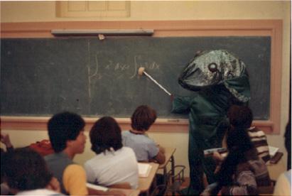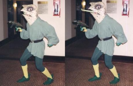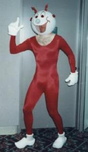 The plecostomus teaching class is the oldest pictured here, around 1979. What's a "plecostomus" you say, and why did I make a costume of one? It's a suckermouth catfish common in aquariums and I get crazy ideas sometimes (see broccoli head above). The red guy is Reddy Kilowatt, used during the '30s-'60s to advertise electricity. Reddy is still in use today in some areas.