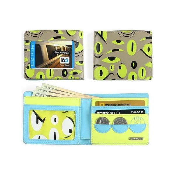 A slim, stylish, and unique money-holding piece of art. There's two i.d. windows, three coin holders, and surprises a-plenty.