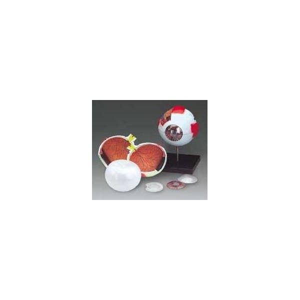 Quality educational eyeball model. 6-times enlarged. Dissects into 7 parts.